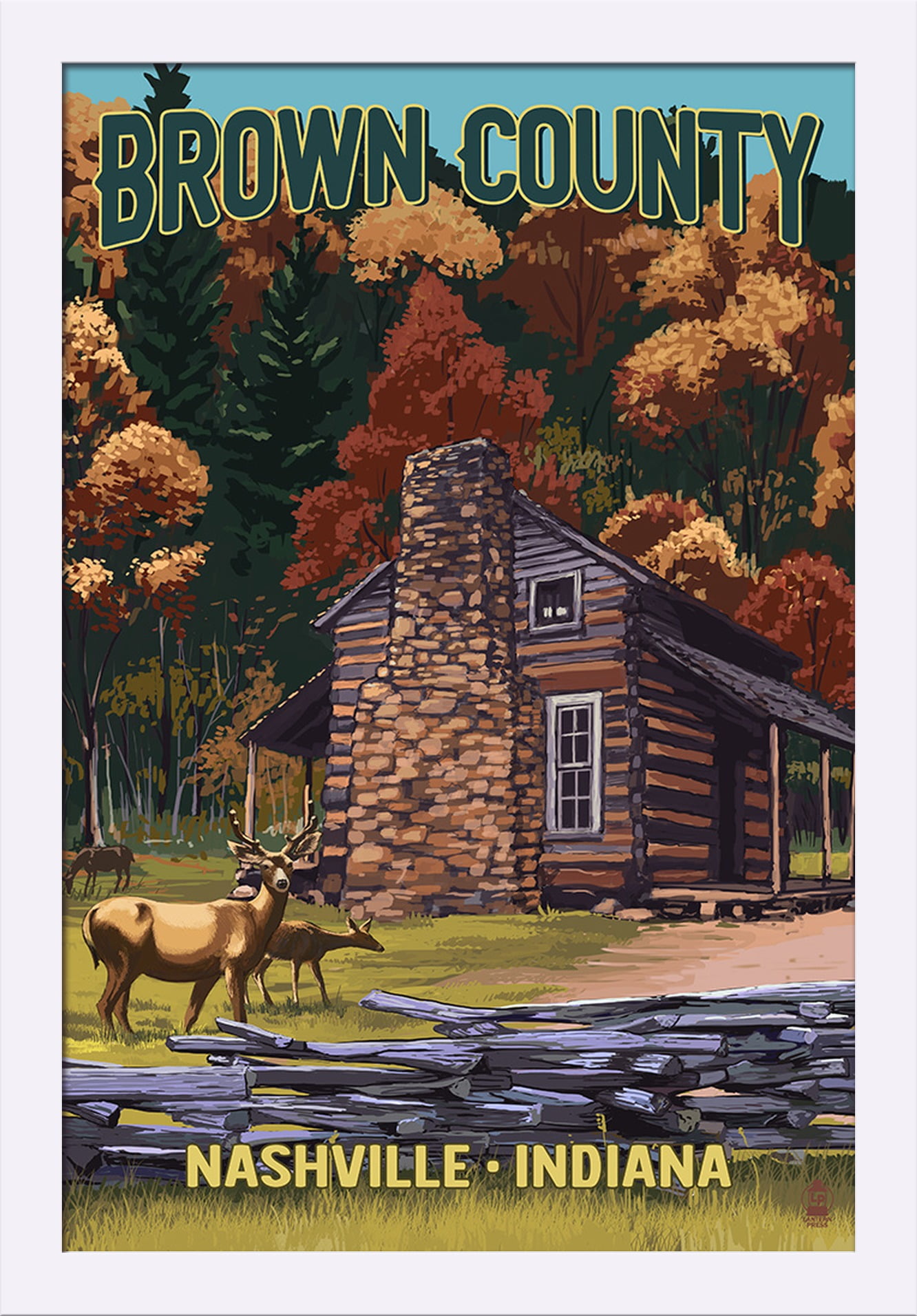 Brown County Nashville Indiana Deer Family Cabin Scene Lantern Press Artwork 16x24 Giclee Art Print Gallery Framed White Wood Walmart Com